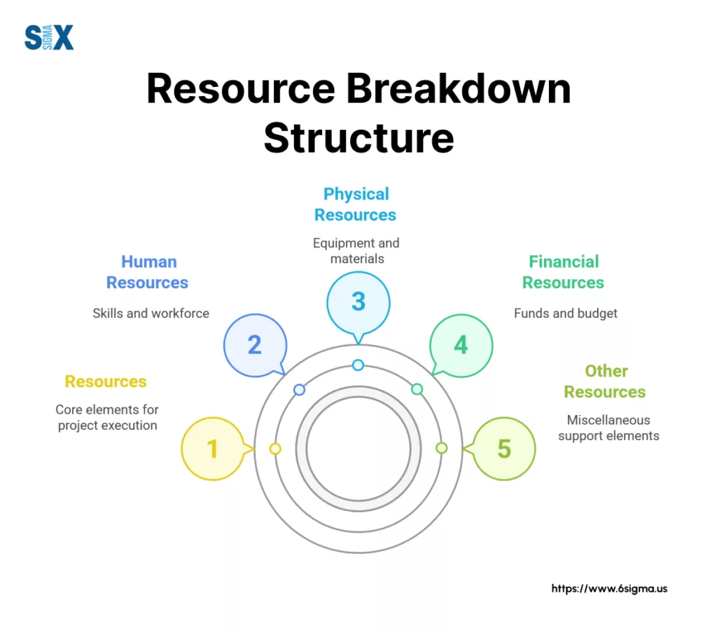 - Physical Resources: Equipment, facilities, materials, and infrastructure needed to complete work.